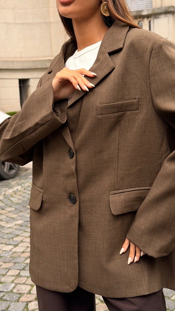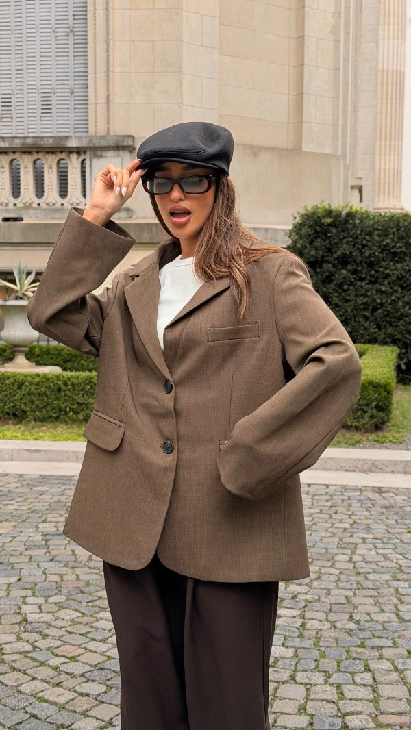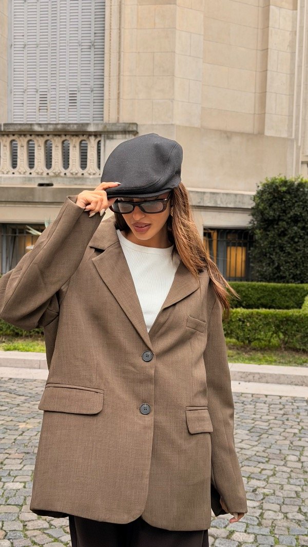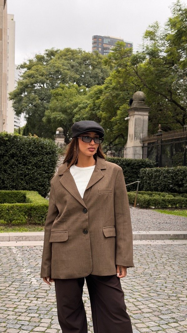 Blazer oversized con dos pinzas en el delantero, hombreras y bolsillos en los costados. Forrería a tono. Producto importado