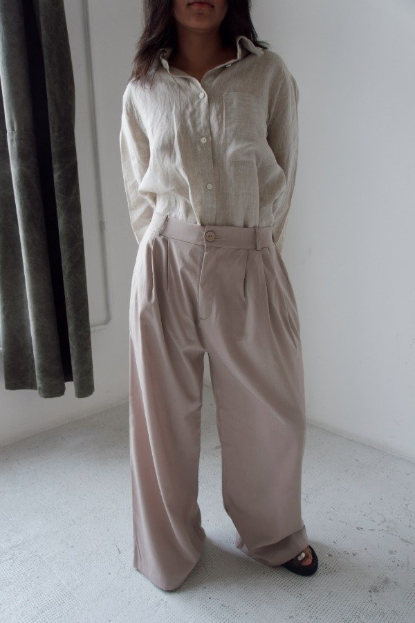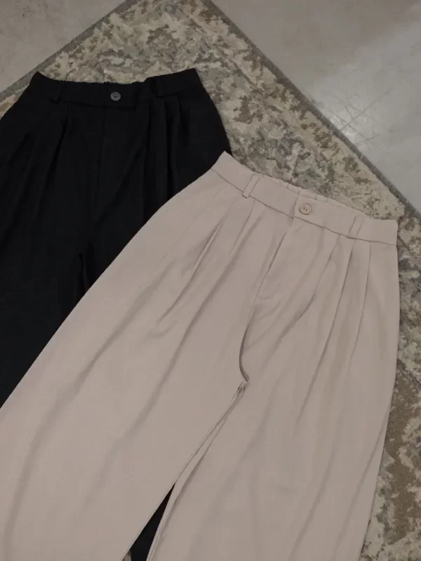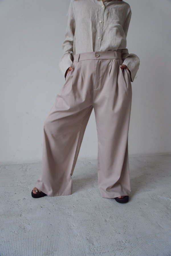 Pantalón corte amplio con pliegues.