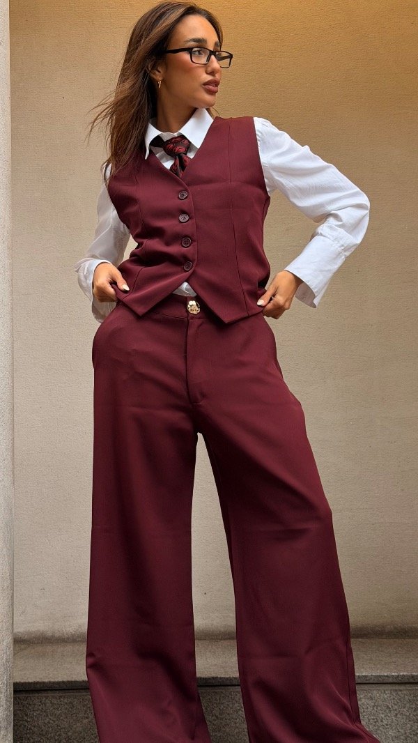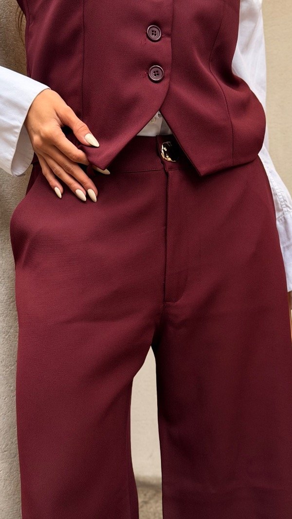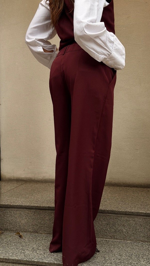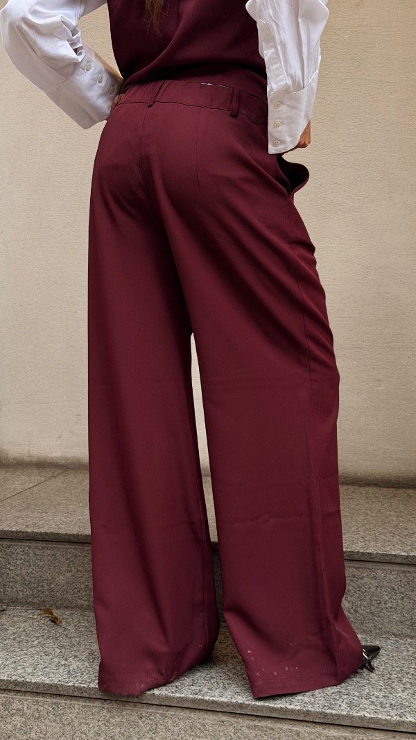 WIDE LEG RECTO SASTRERO, posee bolsillos, tiene cintura delantera lisa con elastico atras, pasacintos, cierre y boton dorado.