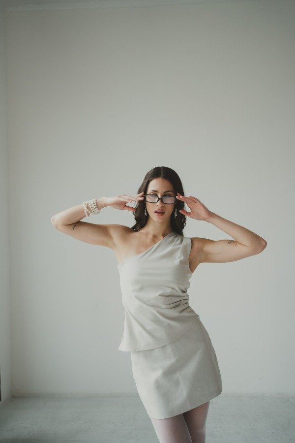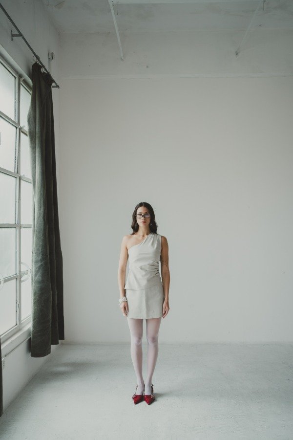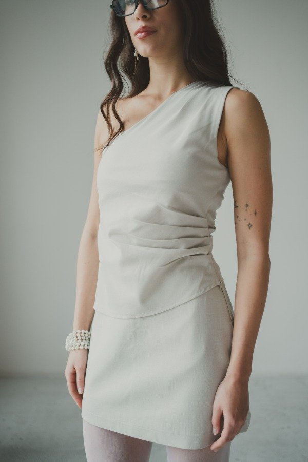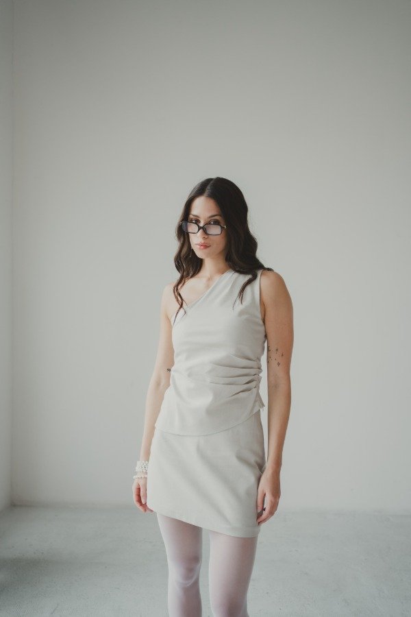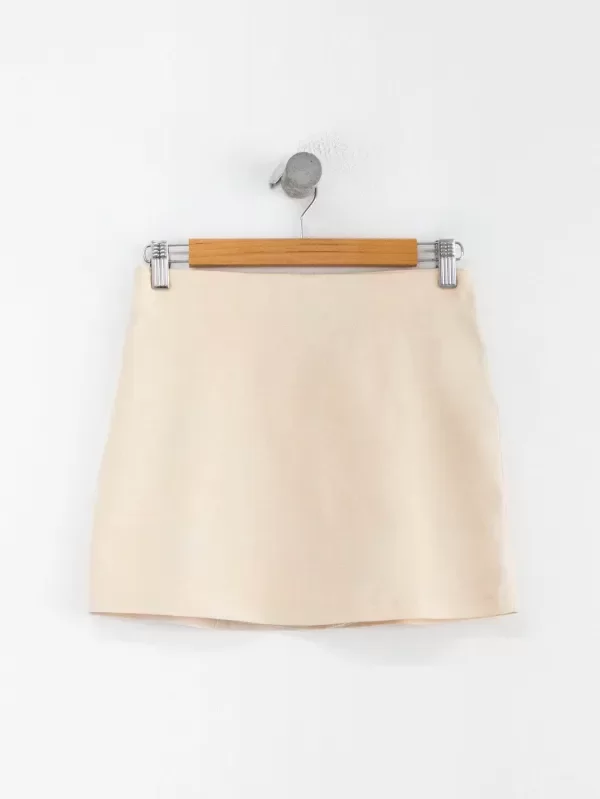 Falda mini con short interno de la misma tela. Cierre en el costado con cremallera oculto en costura. Combinalo con el top GEMA