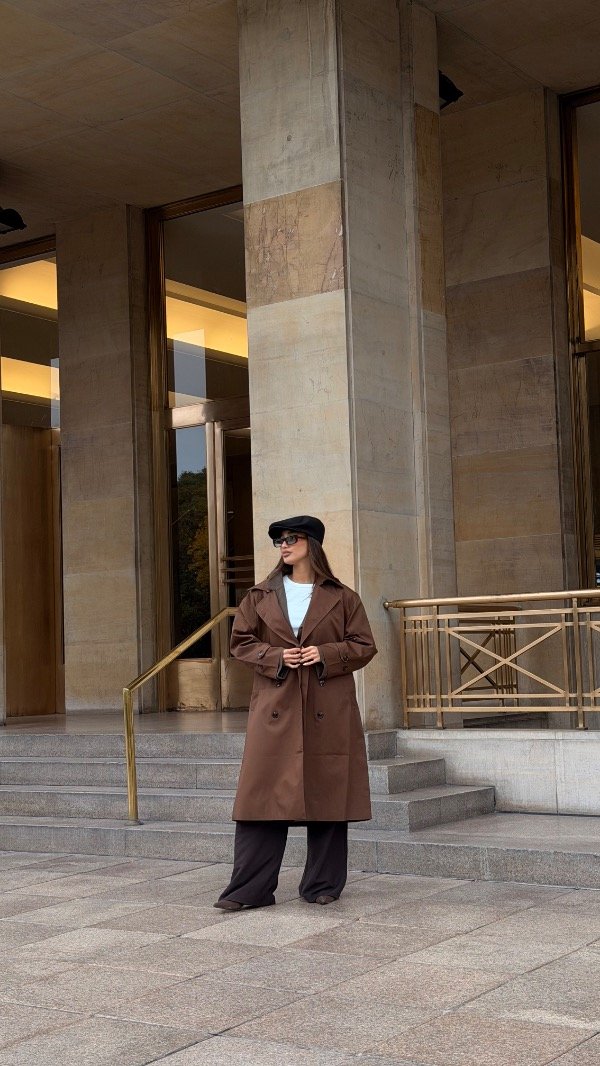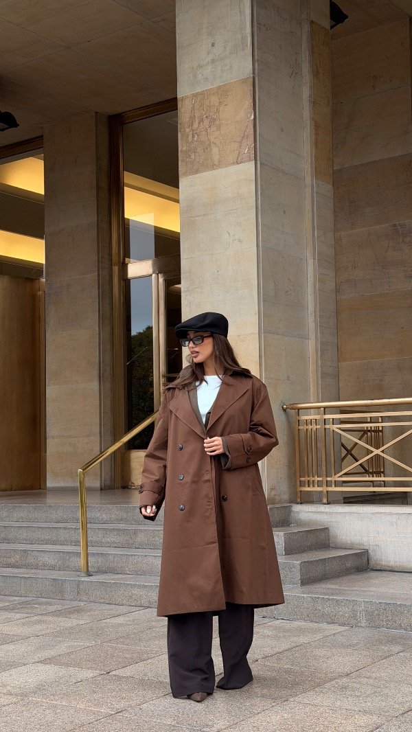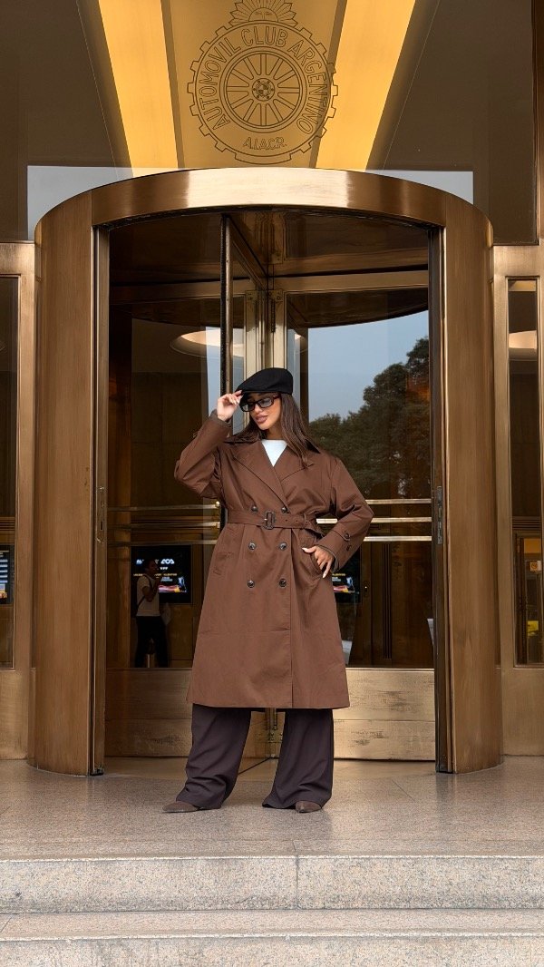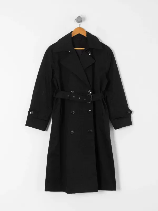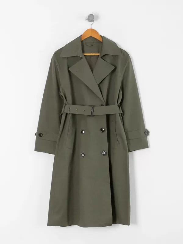 Trench impermeable de cuello solapa y manga larga acabada con trabillas y botones. Bolsillos delanteros de vivo. Bajo con abertura en espalda. Cierre frontales con boton y cinturón. Forro interior a tono