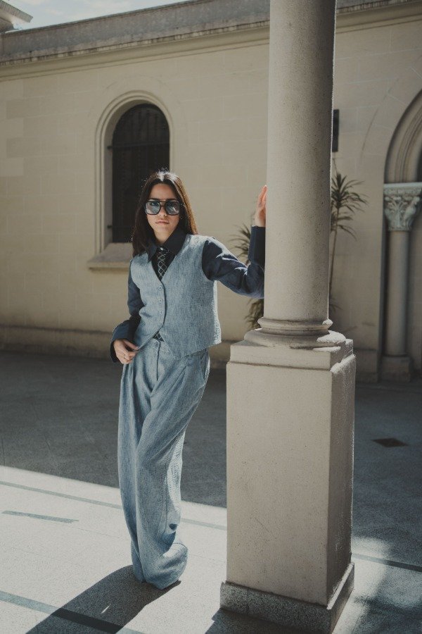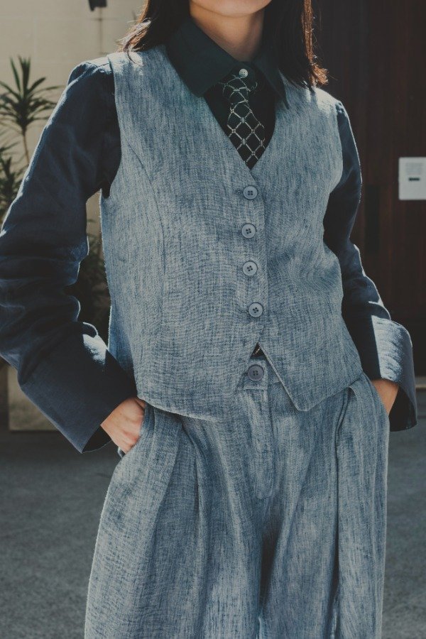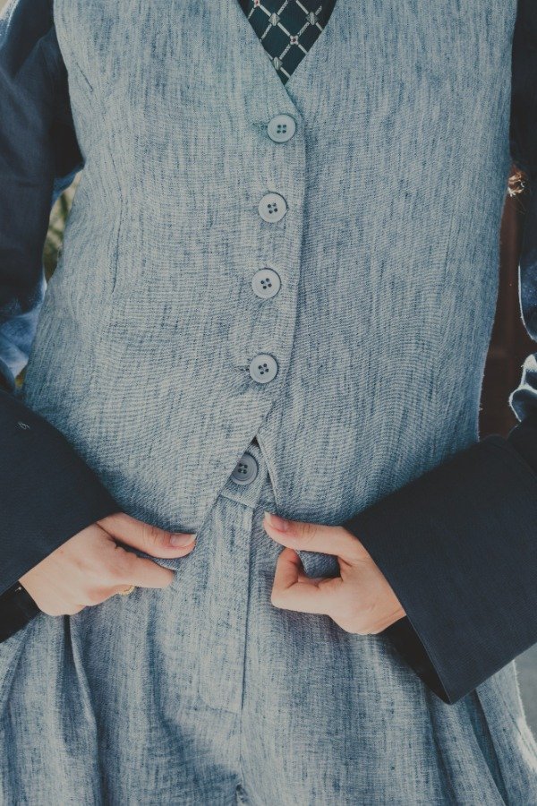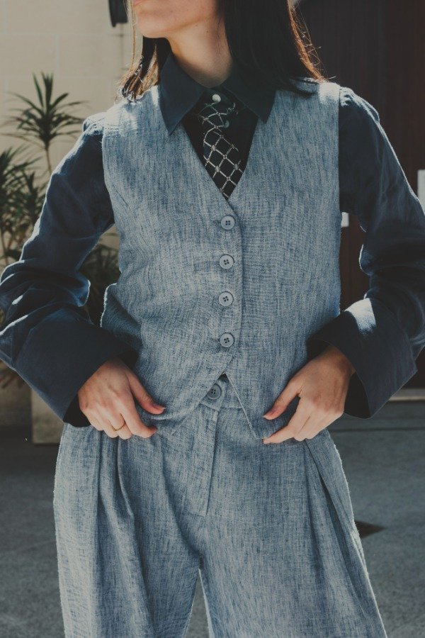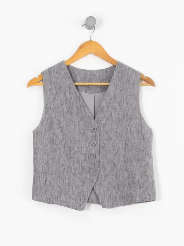 Chaleco sastrero con forrería y botones a tono.Tiene un detalle decorativo en la espalda. Combinalo con el sastrero TERRY