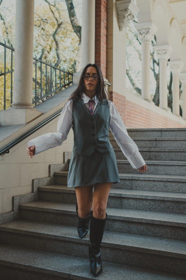 Falda tableada con short interno. Combinalo con el chaleco INES