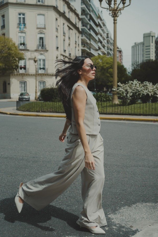 Wide leg sastrero con bolsillos en los costados, con doble pinza para darle más amplitud y espalda con bolsillo no funcional.